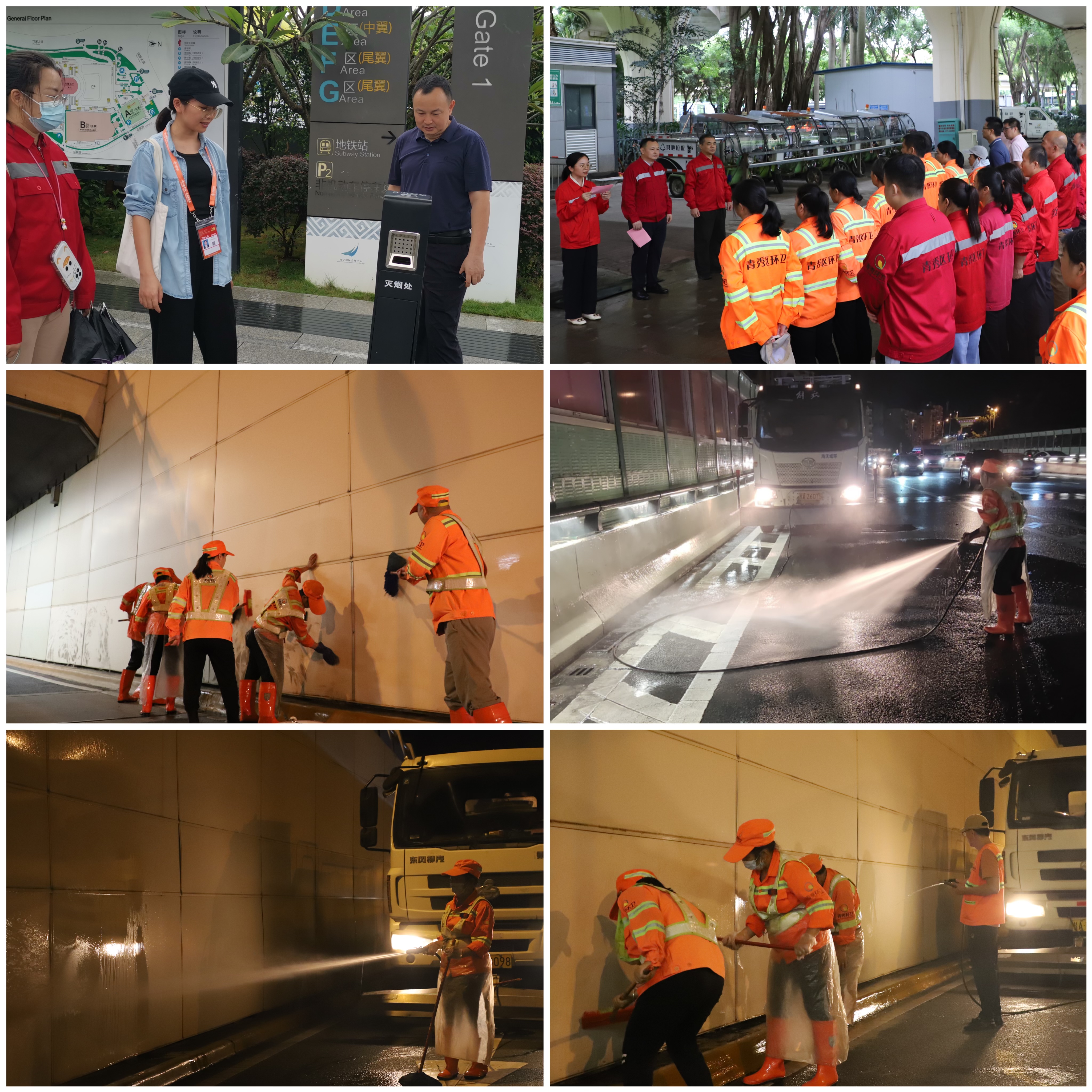 三、加大环境卫生精细化保洁力度。早上6点半前,所有环卫大扫作业完成,进入常态化巡回保洁状态。应急保洁员严阵以待,随时待命,及时处理各种突发状况,同时,保洁人员加大对路面积水防控,及管理人员加强对公厕的监督检查的频率,确保公厕干净整洁。青秀区环卫站精准发力,对竹溪立交、青竹立交、长湖立交、葫芦鼎大桥等的防撞墙、隔音板及主要道路进行了深度清洗突击行动,全面深化细化会场周边及重要道路保洁整治工作。利用夜间人、车流量少的时间段,安排保洁人员、作业车辆开展全方位深度“大冲洗”,同时,巡回清运重点区域重点路段的果皮箱、垃圾桶垃圾,做到垃圾不满溢。
